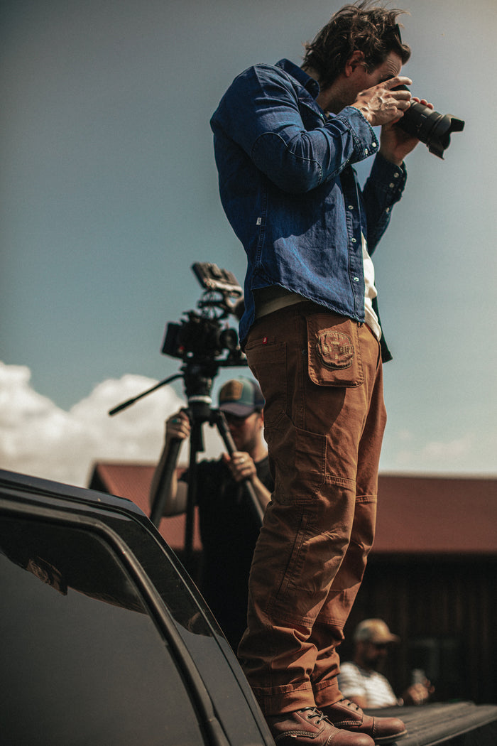 One of my favourite things from the &SONS Collection is the Crew Pants, because I could tell they were designed and put together by a photographer. They have about 48,000 pockets. They have things for lens caps, for lenses, different bits and pieces, for knee pads in there and everything else.
