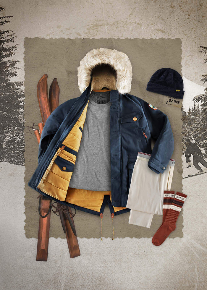 To top it off, our Snow Ridge Parka Jacket; an absolute must. Our parkas are built with weather-resistant fabrics to protect against snow and wind, offering reliable warmth while maintaining a classic, rugged style. Add a vest for a flexible layer of insulation, and long johns under your ski pants for that extra barrier against the chill.