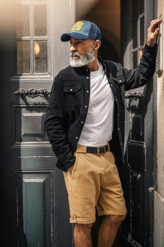 Paired with the Virgil Chino Shorts in Tan, this outfit strikes the perfect balance between style and practicality. Crafted from medium-weight cotton twill, these shorts feature brass hardware and a button tab turn-up for a sophisticated touch. The classic silhouette and versatile colour make them a wardrobe staple for any occasion.