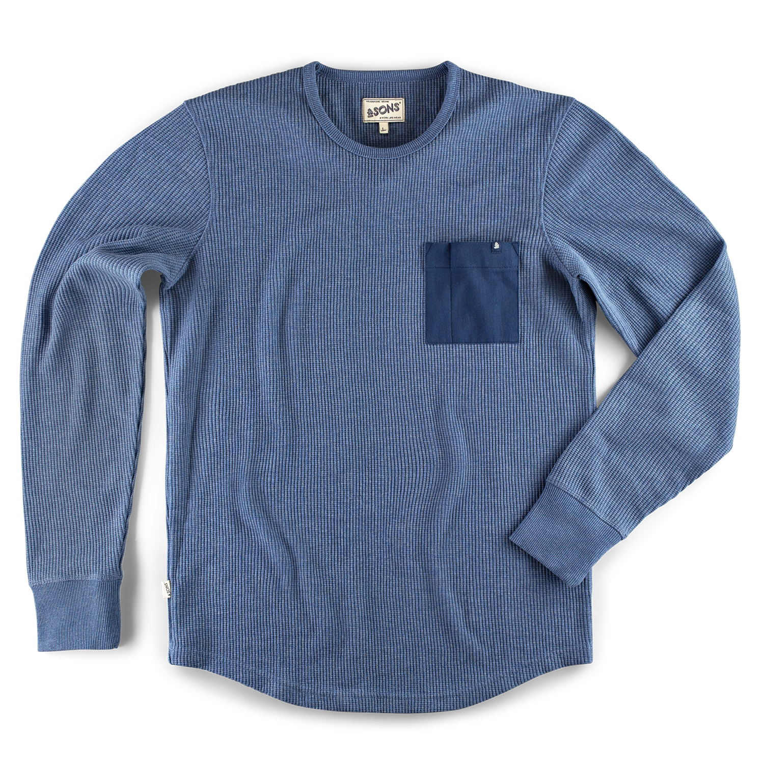 &SONS Glen Pocket Waffle Crew Sky Blue Marl