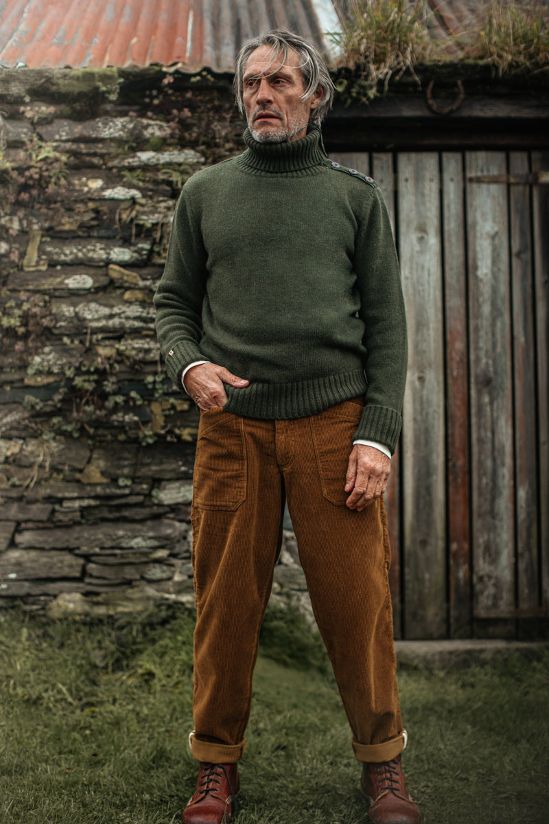 &SONS Ahab Submariner Rollneck Jumper Moss Green