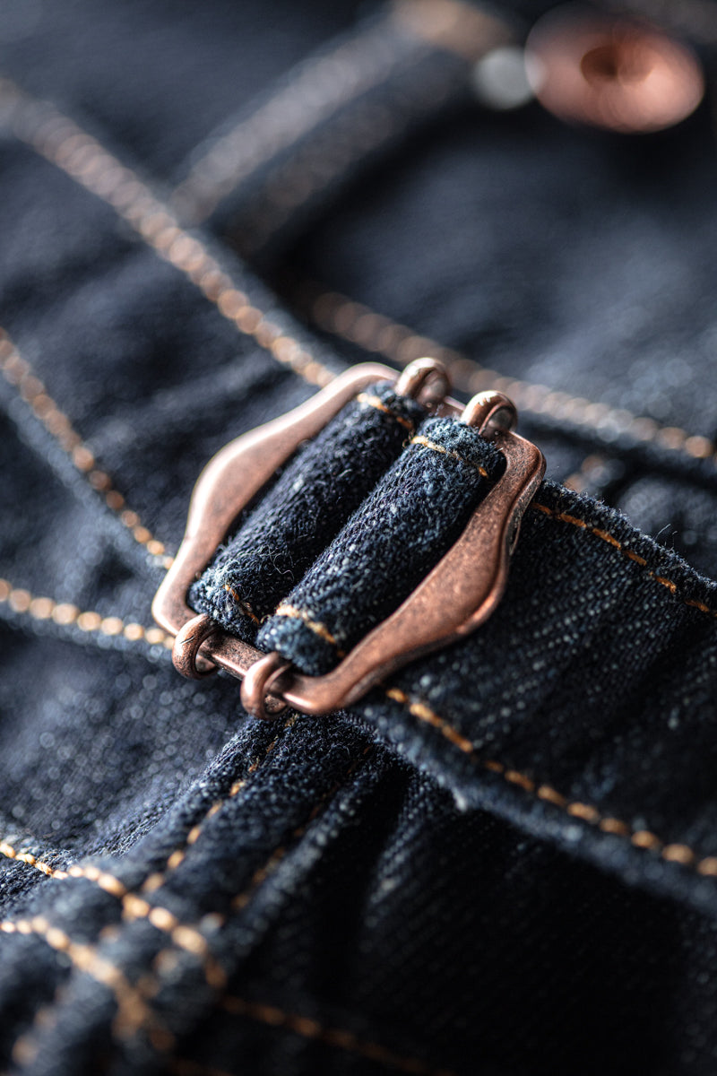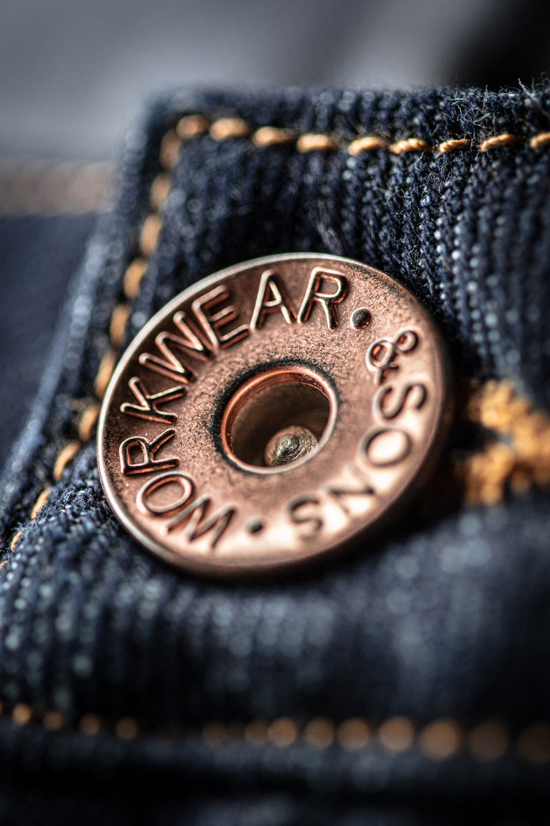 This 14oz raw Selvedge denim is supplied by ISKO, one of the world’s leading responsible denim manufacturers.